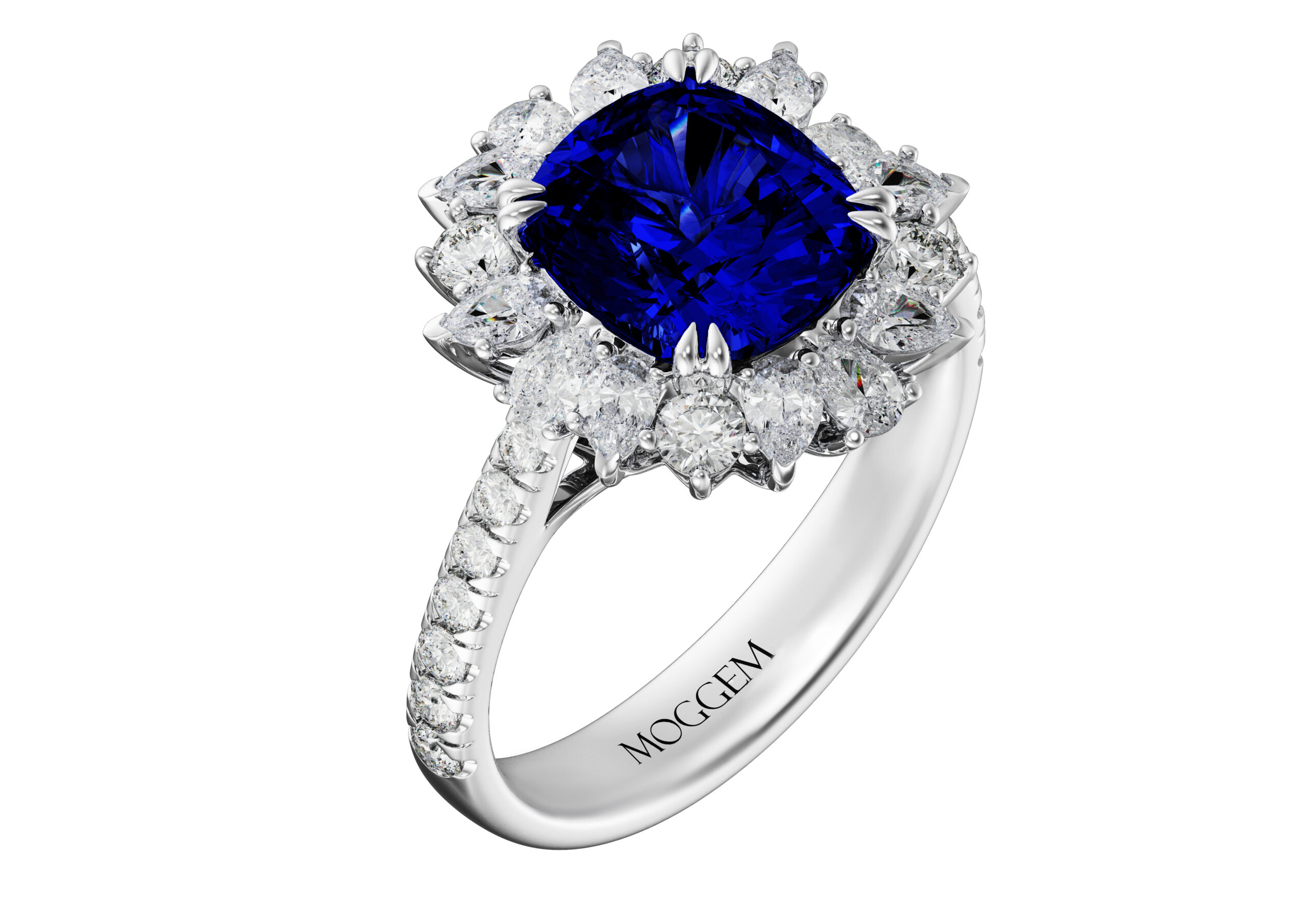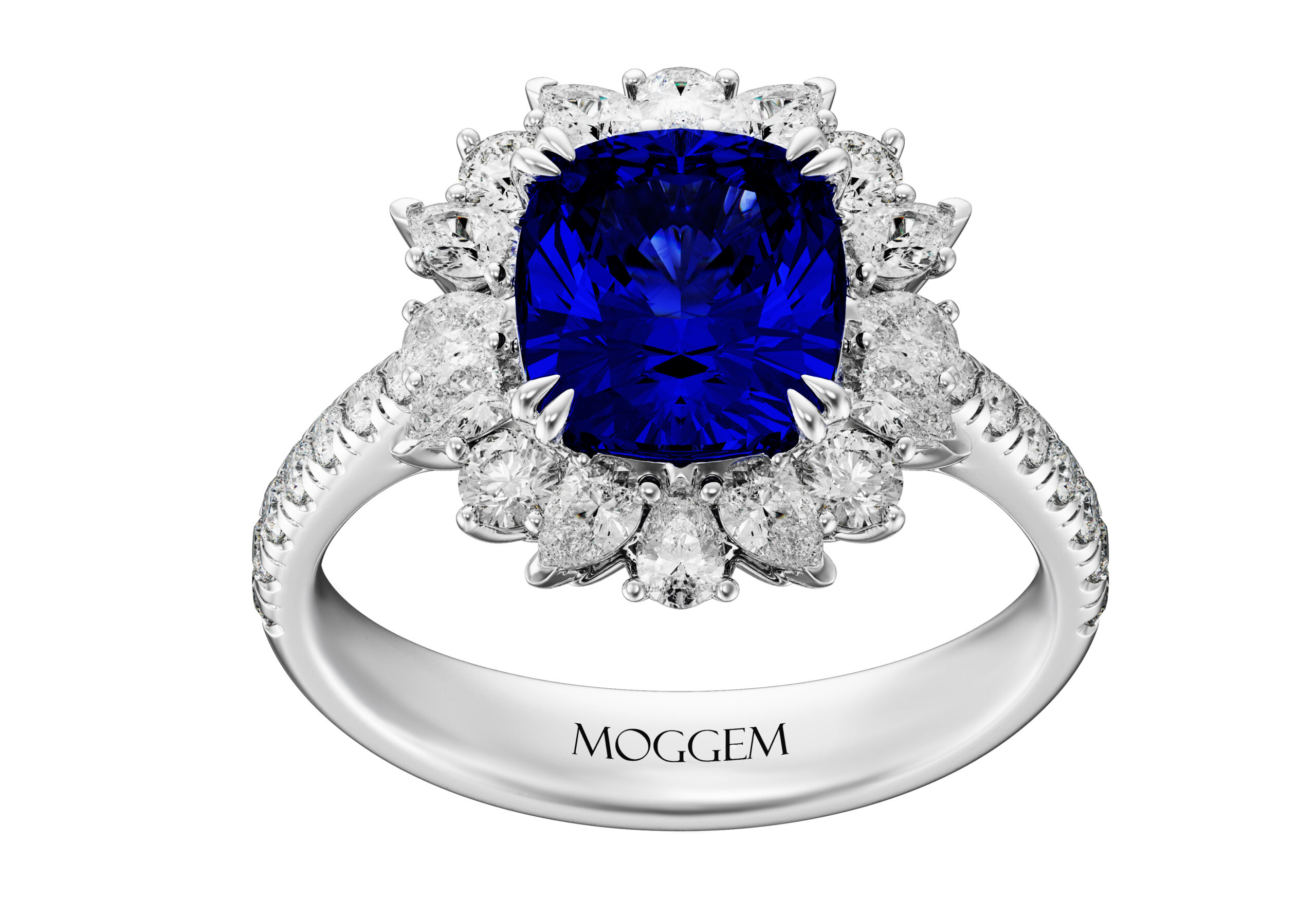 | Центральный камень | Камень: Сапфир Огранка: Кушон Вес: 2.36 ct / 3.65 ct |