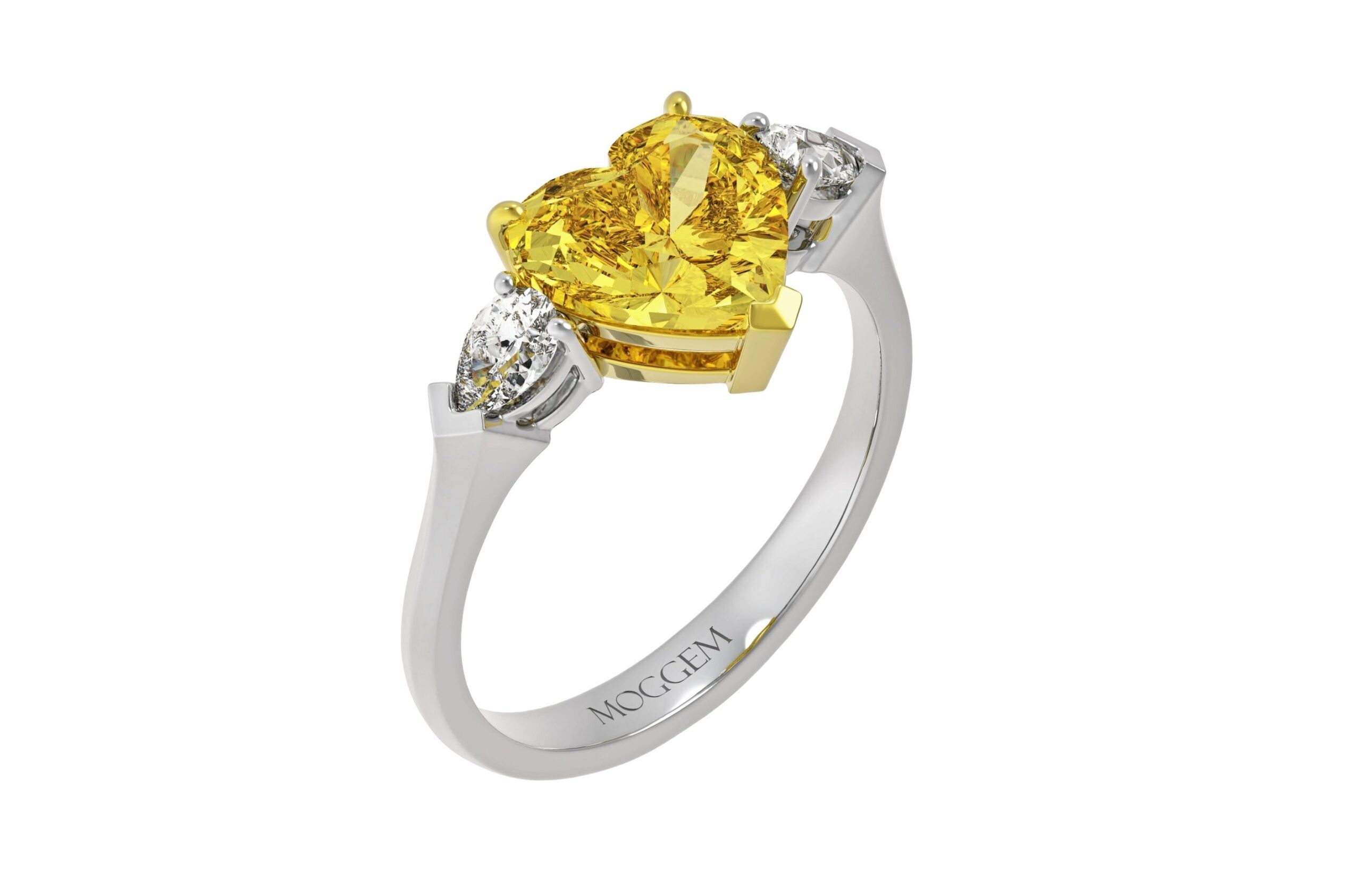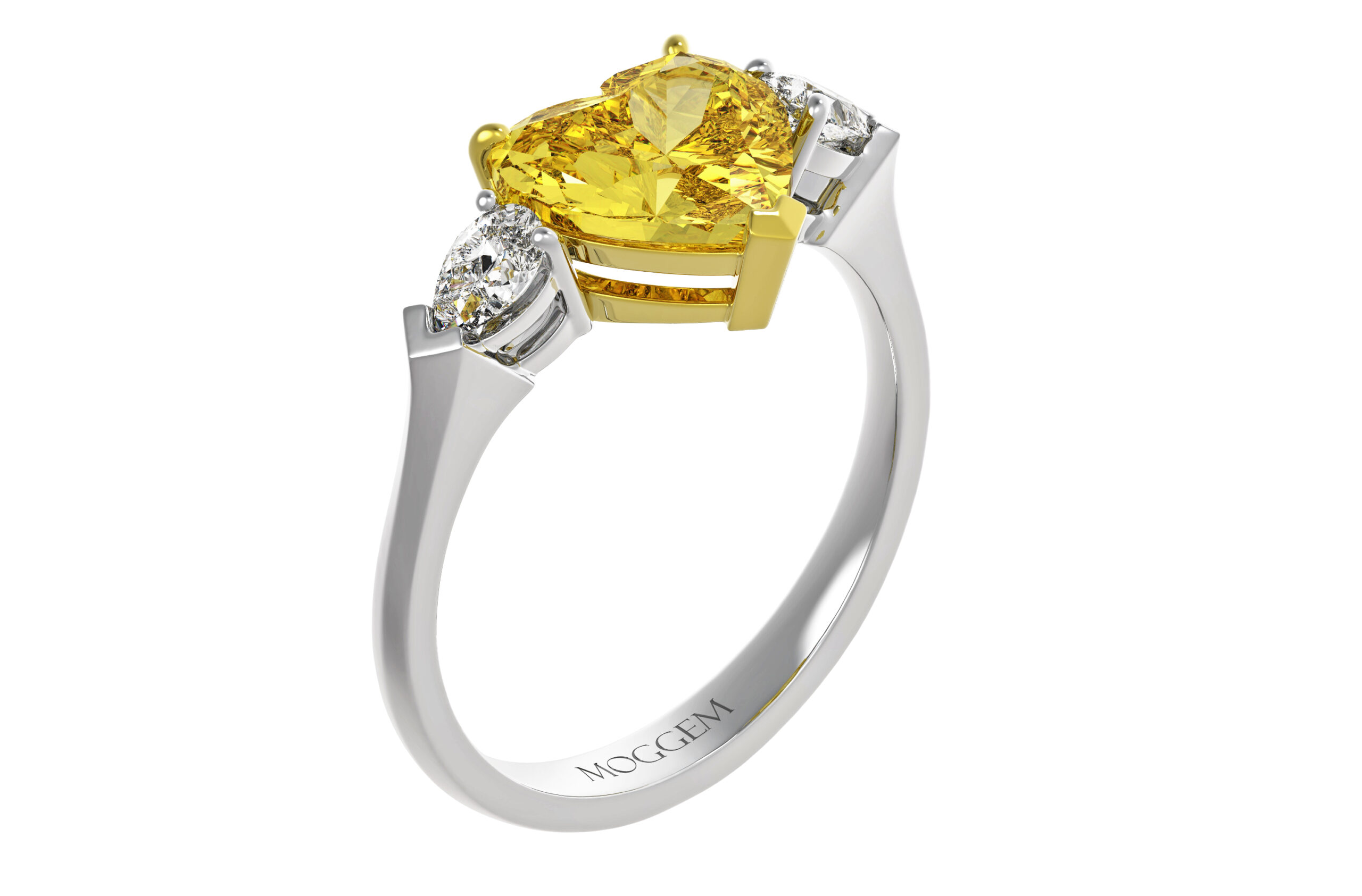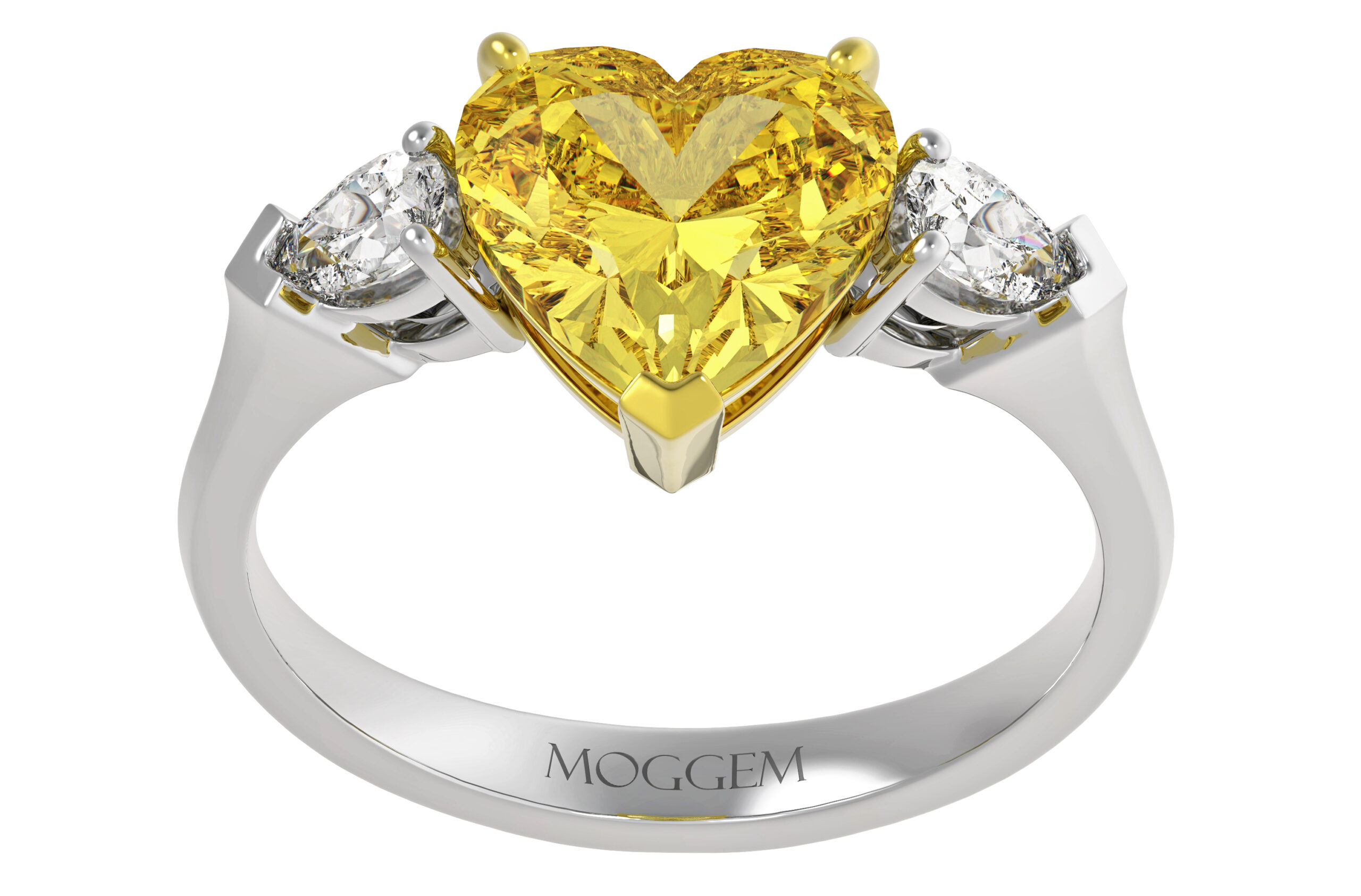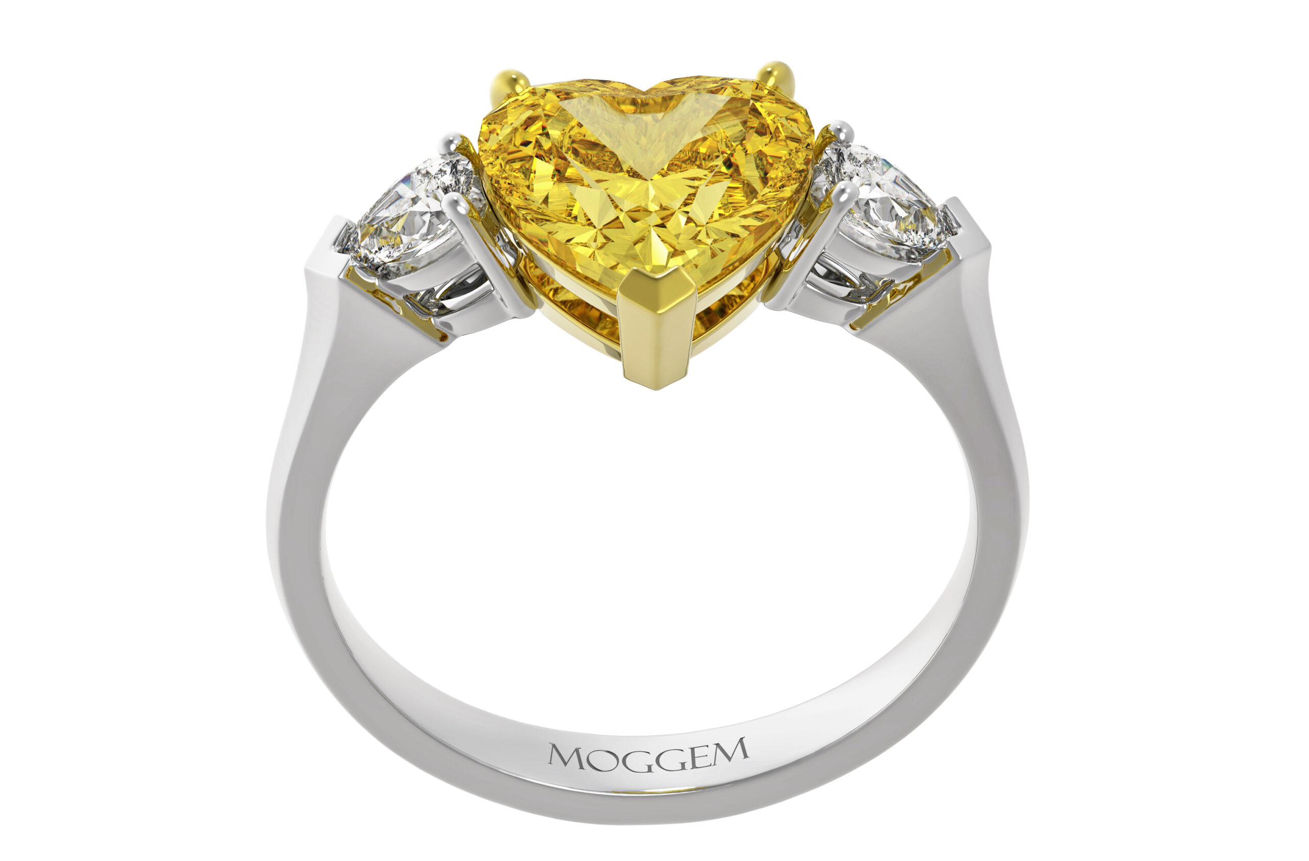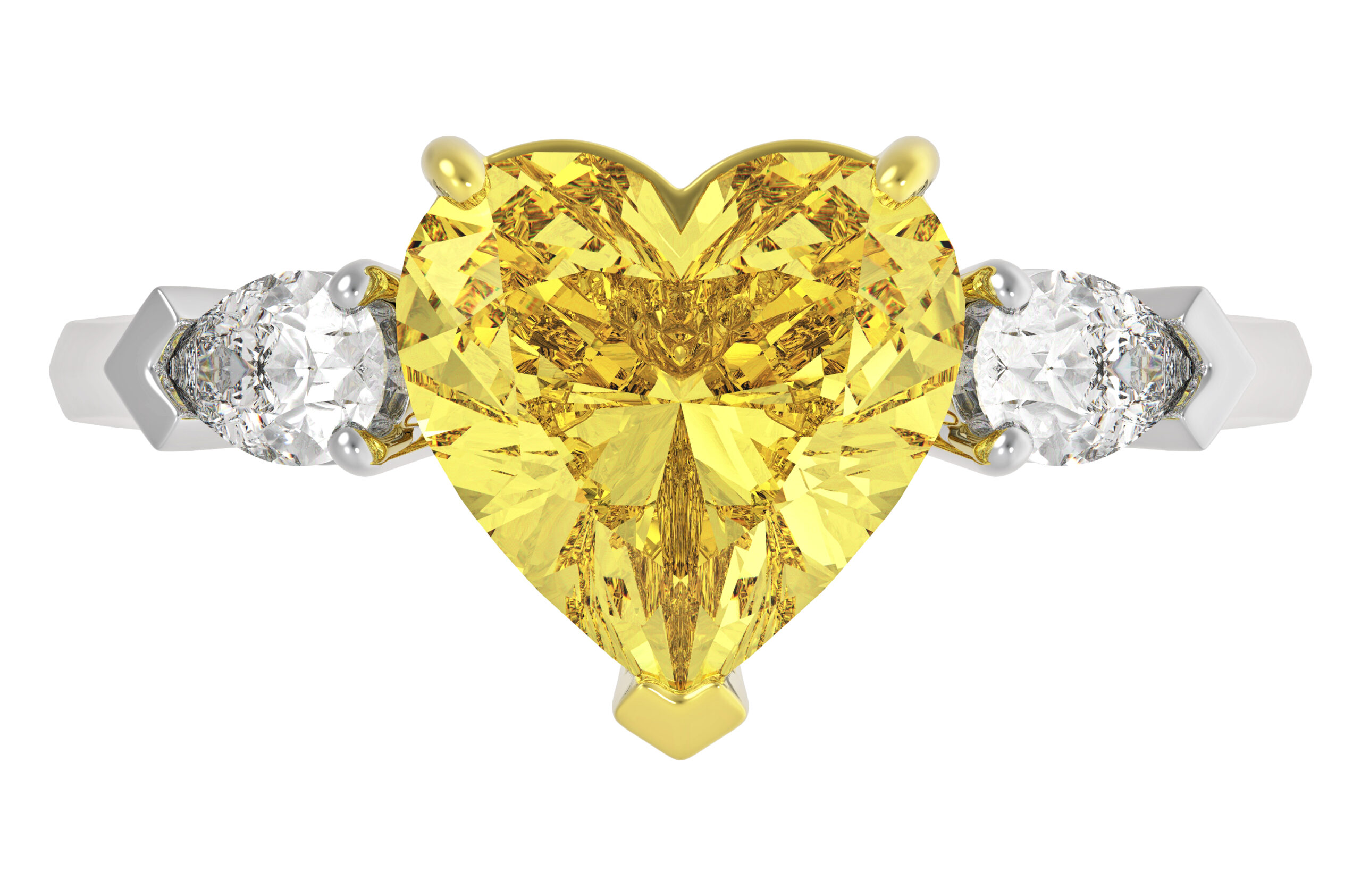 | Центральный камень | Бриллиант Огранка: Сердце Вес: 0.7 ct / 1.3 ct / 2.1 ct Цвет / Чистота: Fancy Yellow / Si1 Сертификат: GIA |