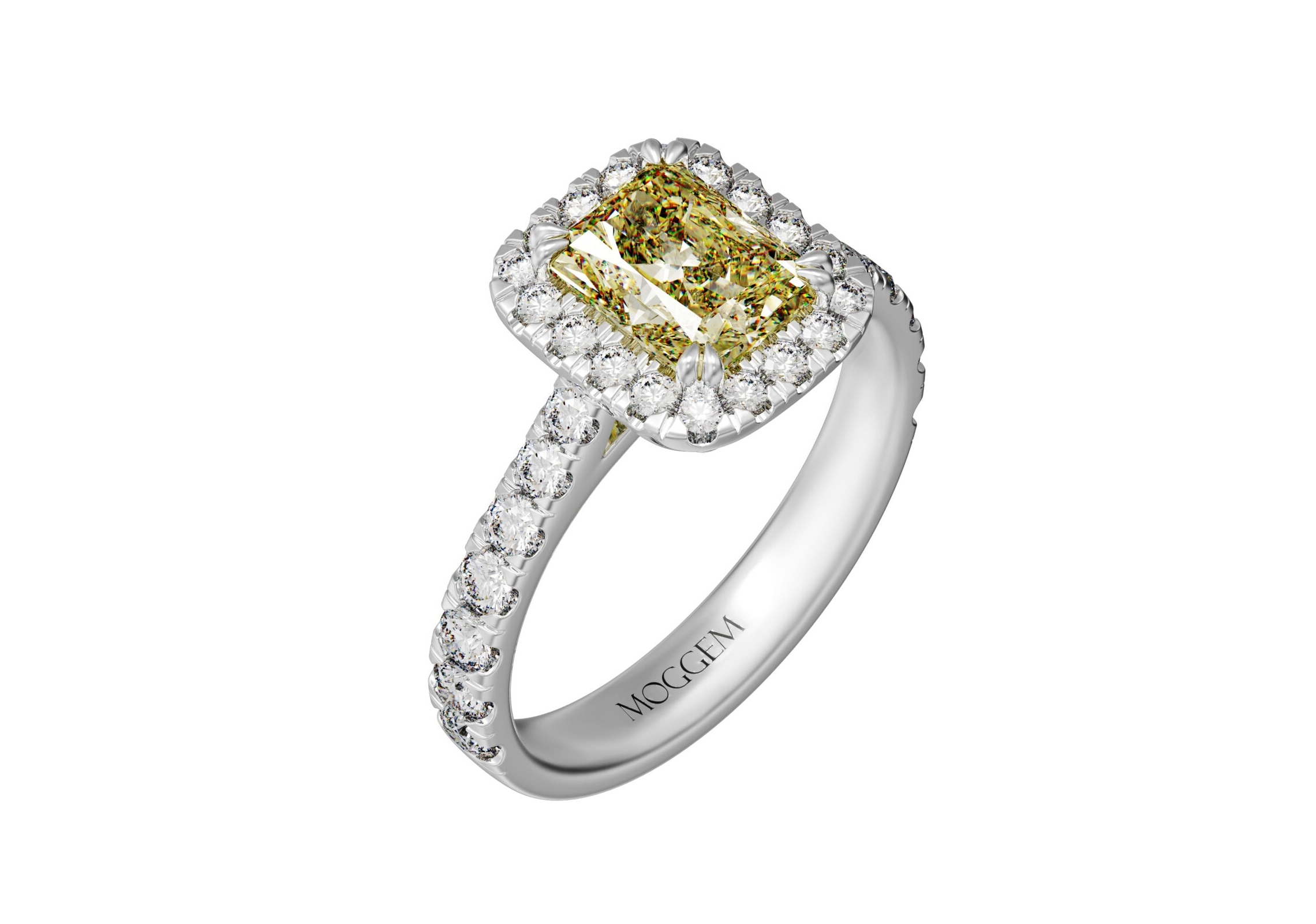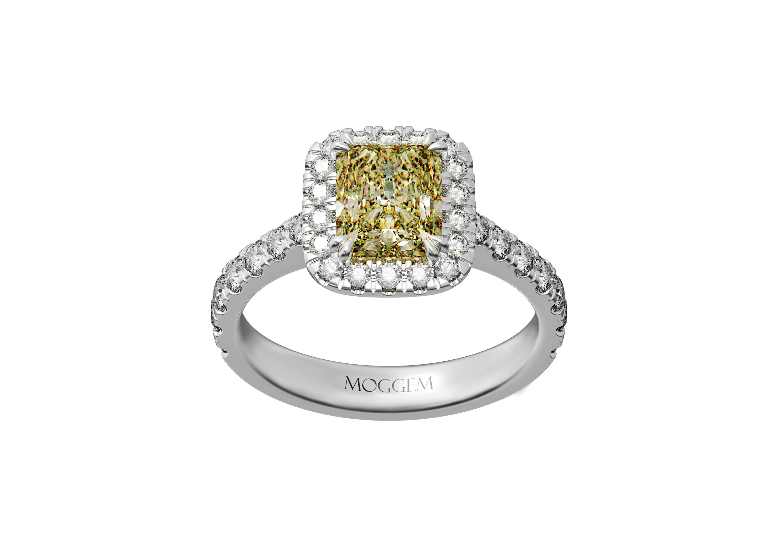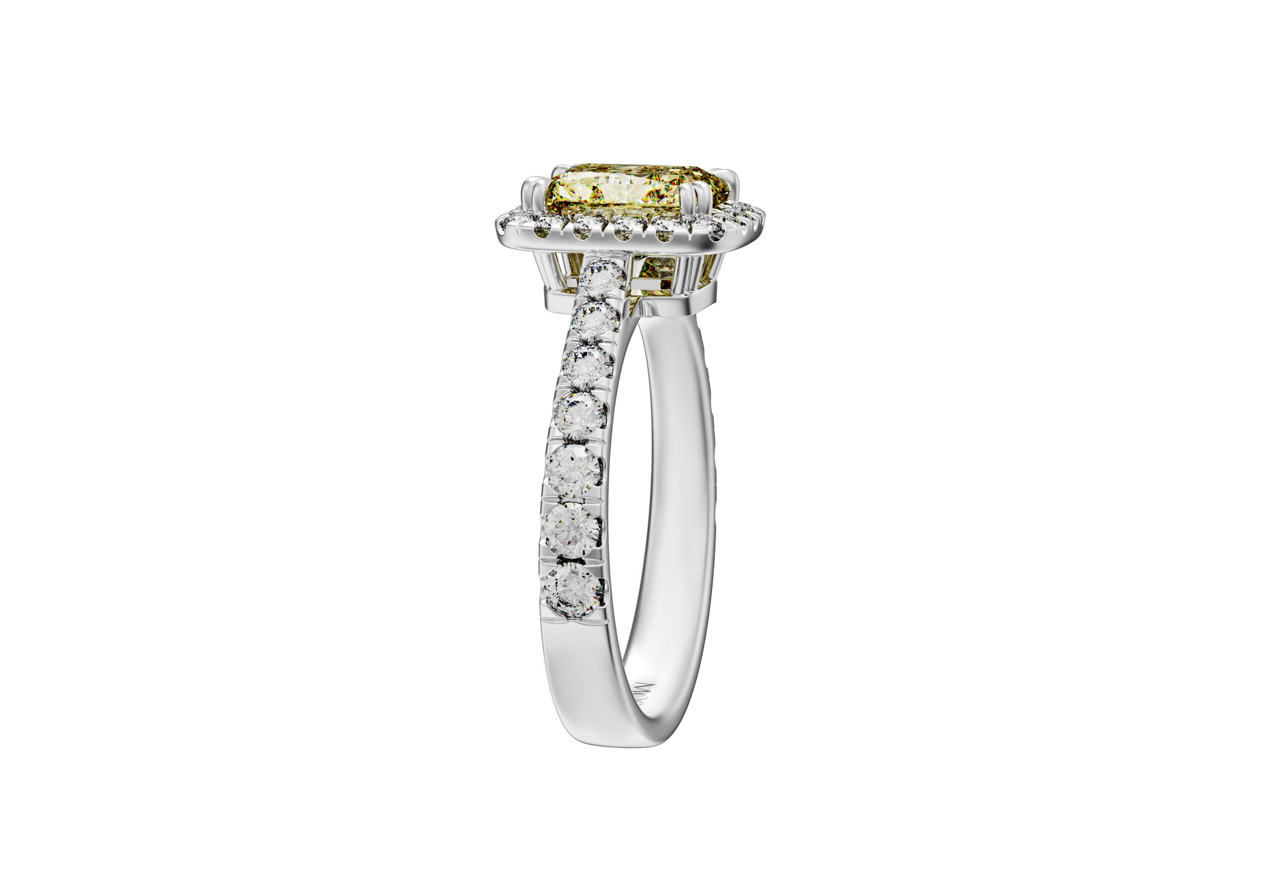 | Центральный камень | Бриллиант Огранка: Радиант Вес: 1.2 ct / 2.0 ct Цвет / Чистота: Fancy Yellow / VS2 Сертификат: GIA |
