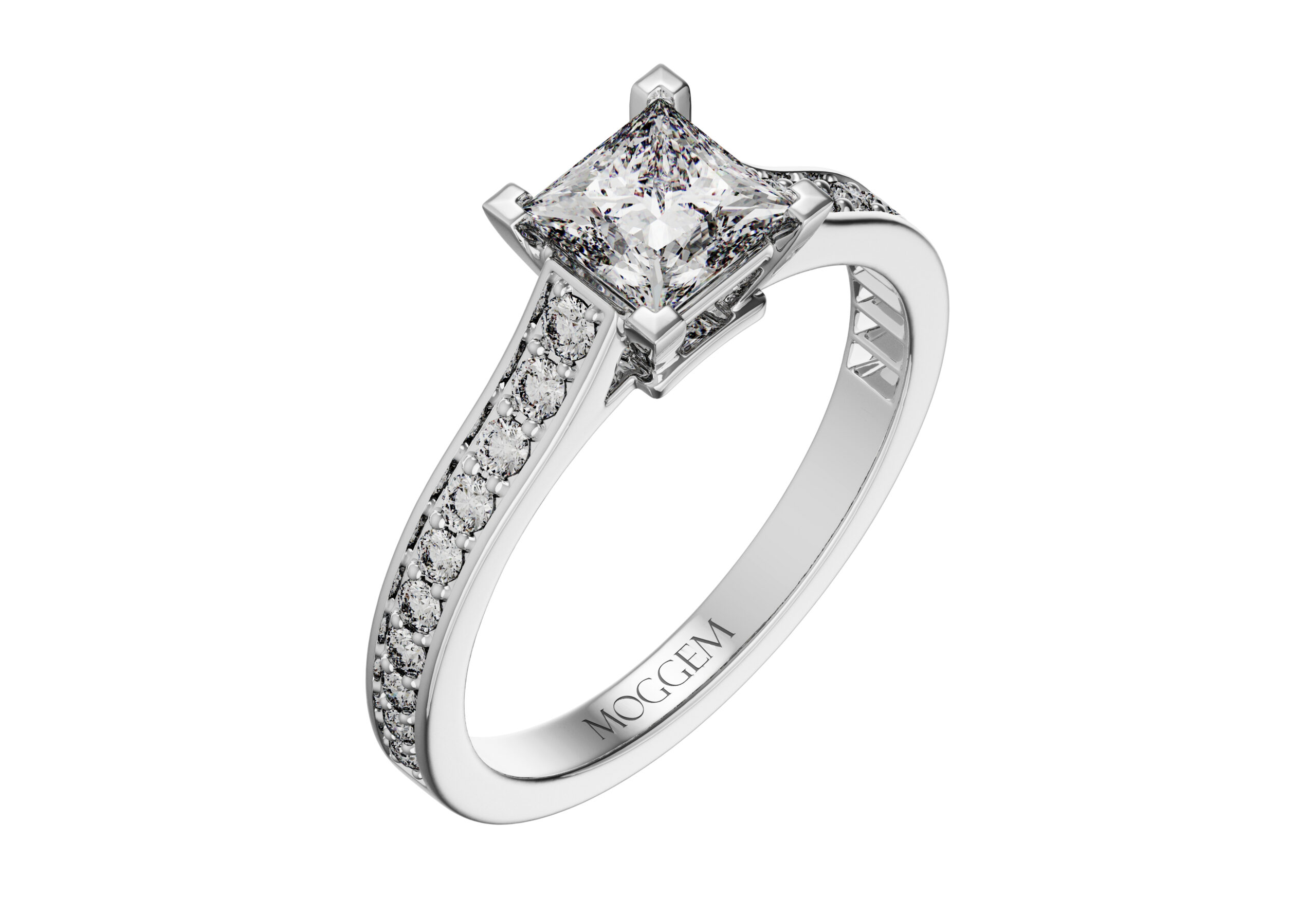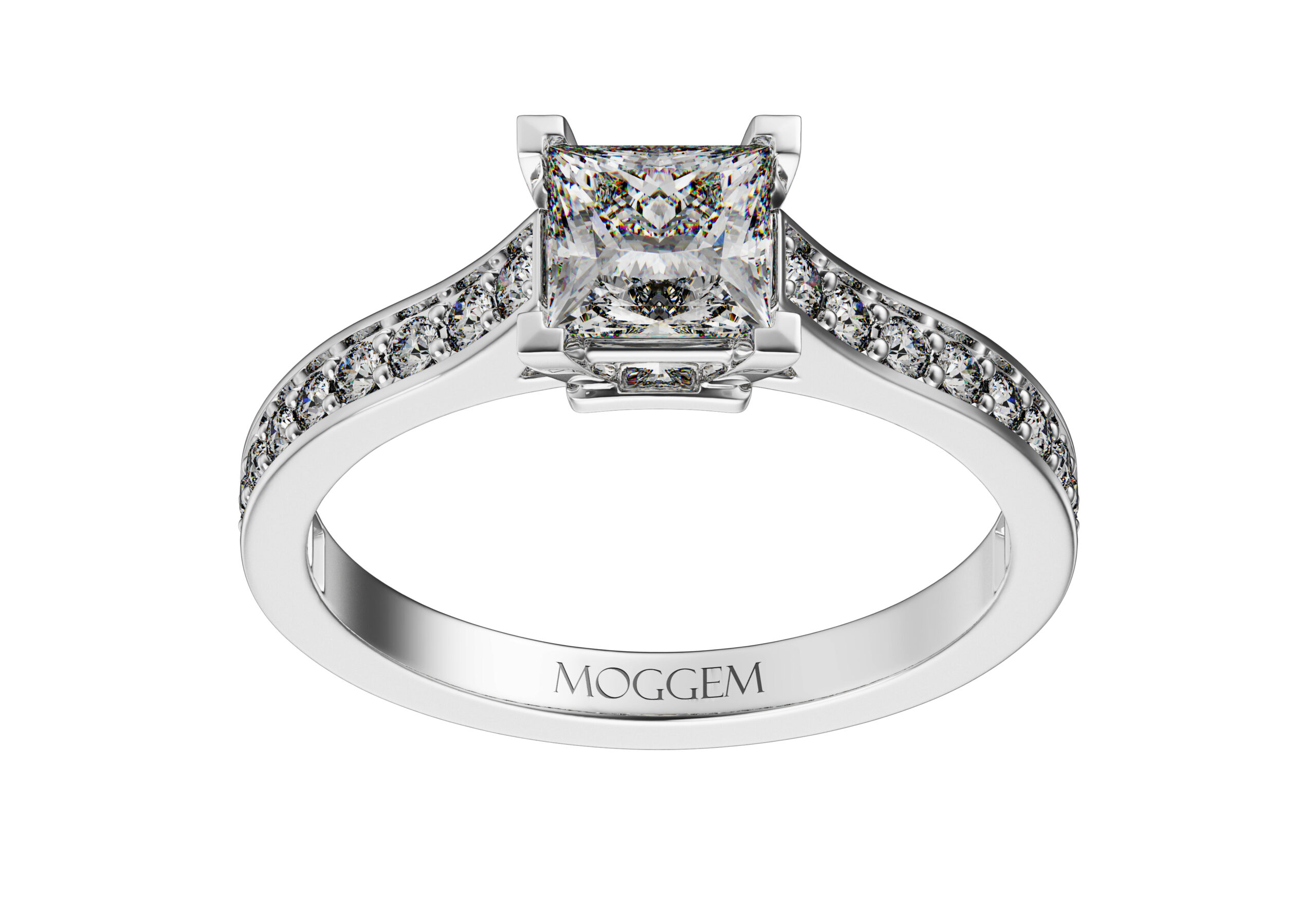 | Центральный камень | Бриллиант Огранка: Принцесса Вес: 0.7 ct / 1.0 ct / 1.6 ct Цвет / Чистота: H / VS1 Сертификат: GIA |